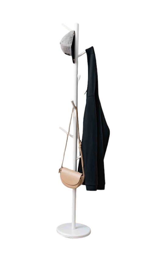 White Coat Rack – Freestanding Modern Hat & Coat Stand 6 Hooks | Powder-Coated Steel | HAOG